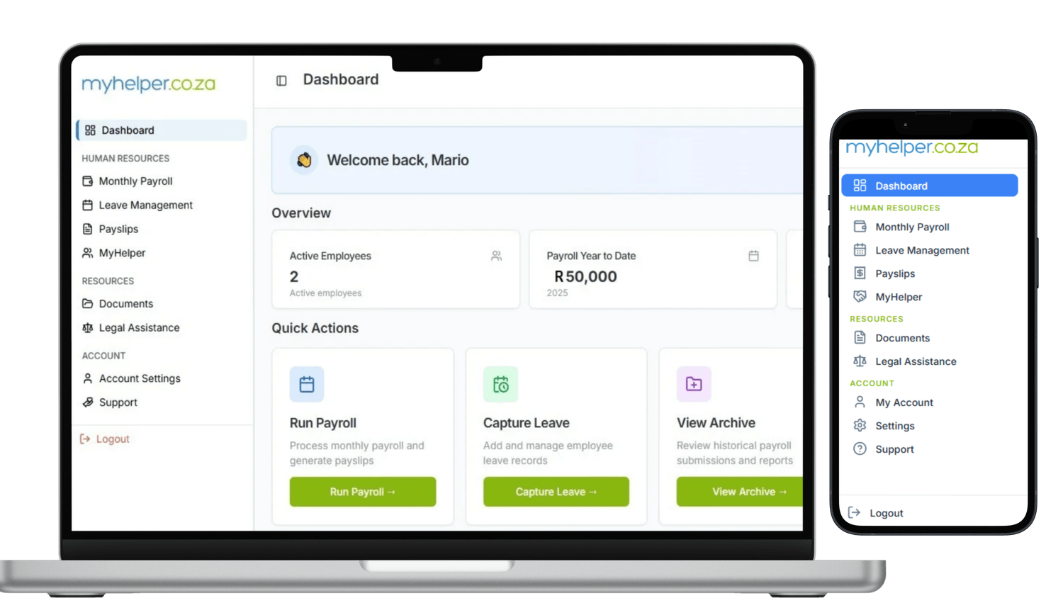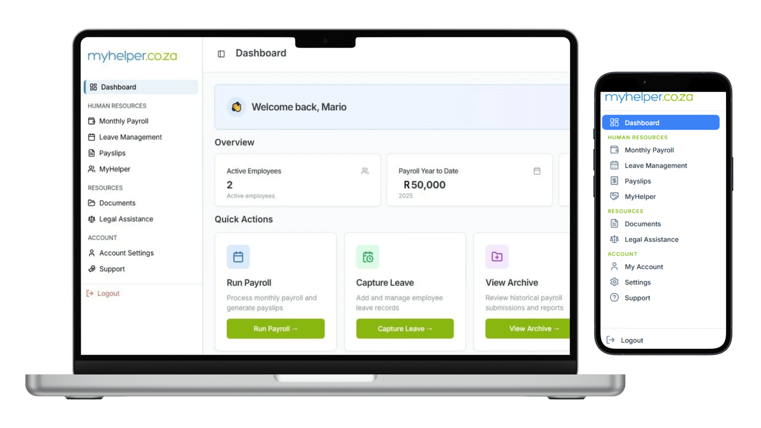 MyHelper helps domestic employers stay compliant with UIF, COID, payslips, leave, contracts, and labour law requirements.